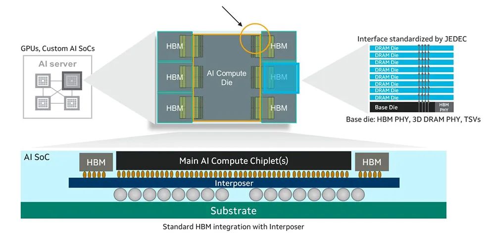 当定制HBM被引入其XPU AI芯片中时,它能访问33%以上的内存和25%以上的性能,同时提高能效。定制HBM计算架构通过序列化和加速其内部AI计算加速器硅片和HBM基片之间的I/O接口来增强XPU,以优化特定XPU设计的性能、功率、芯片尺寸和成本。