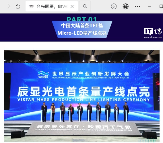 IT之家 12 月 19 日消息,成都辰显光电有限公司今日发文宣布,在四川省成都市今日举行的 2024 世界显示产业创新发展大会开幕式上,辰显光电举办了中国大陆首条 TFT 基 Micro LED 量产线点亮仪式及首台量产产品点亮仪式。