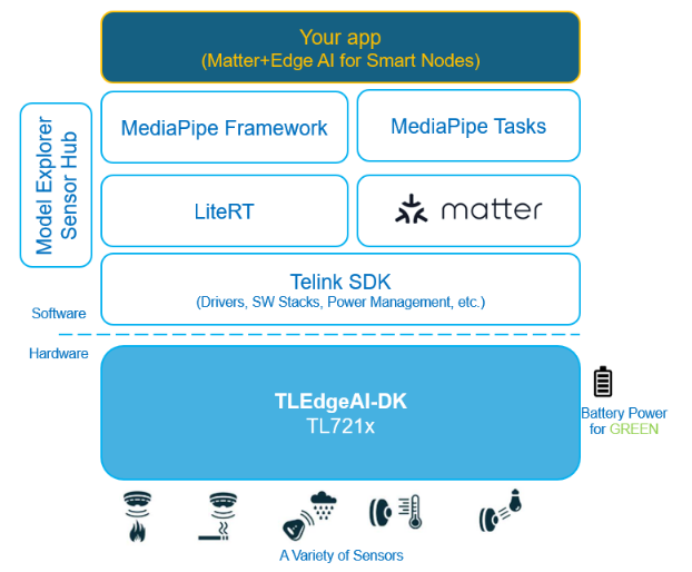 TL721x及TL751x系列,增加了边缘AI运算能力,基于这两款芯片的TL-EdgeAI发展平台,将支持主流本地端AI模型,如谷歌LiteRT、TVM等开源模型,是目前世界上功耗最低的智能物联网连接协议平台,特别适合运用在需要电池供电的各类产品,为海量AI端侧应用的未来发展铺就崭新道路。