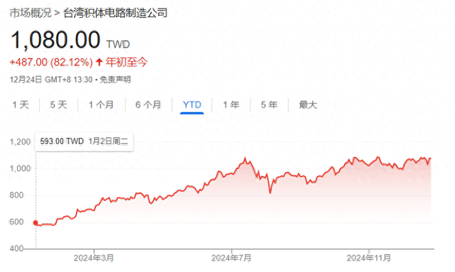 由于投资者对人工智能交易的热情持续,台积电股价今年累计上涨超过82%。