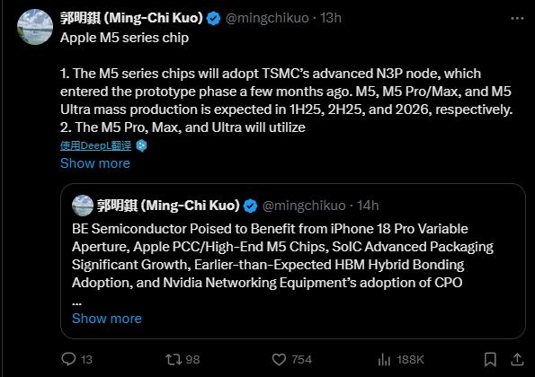可能连果粉都没有料到,M5芯片的进度会推进得这么快。