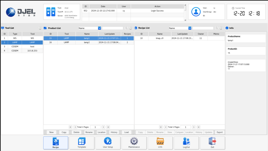 主要用于实时连接CD-SEM设备,收集并管理设备的各种数据,并将量测程式文件统一分发到各个CD-SEM设备进行应用。数据服务模块管理的最重要数据即为CD-SEM量测程式文件,CD-SEM设备中创建的各种量测程式文件,都可以实时被备份和存储到数据服务器中。同时,设备中所有量测程式文件的创建、修改、删除等操作都会被记录在数据服务器的数据库中,可供随时查询、修改、回滚和复原等。这有效避免了量测程式文件被误修改,误删除和错误应用,大大增强了量测程式文件的安全性。