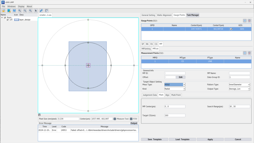 这一模块使用先进的D2DB技术将设计版图信息导入量测程式文件进行创建,同时,东方晶源CD-SEM可运行这类含设计版图信息的量测程式,自动完成量测任务。