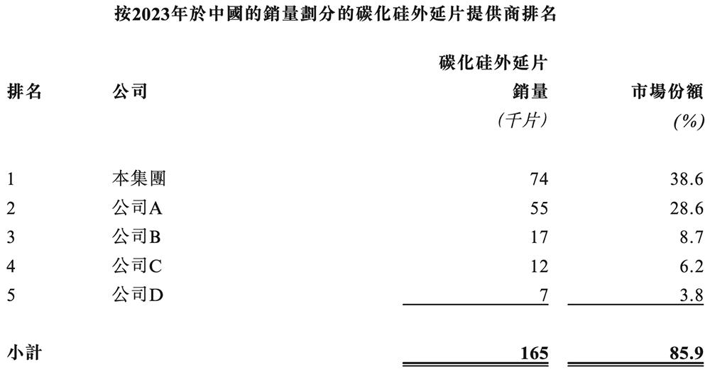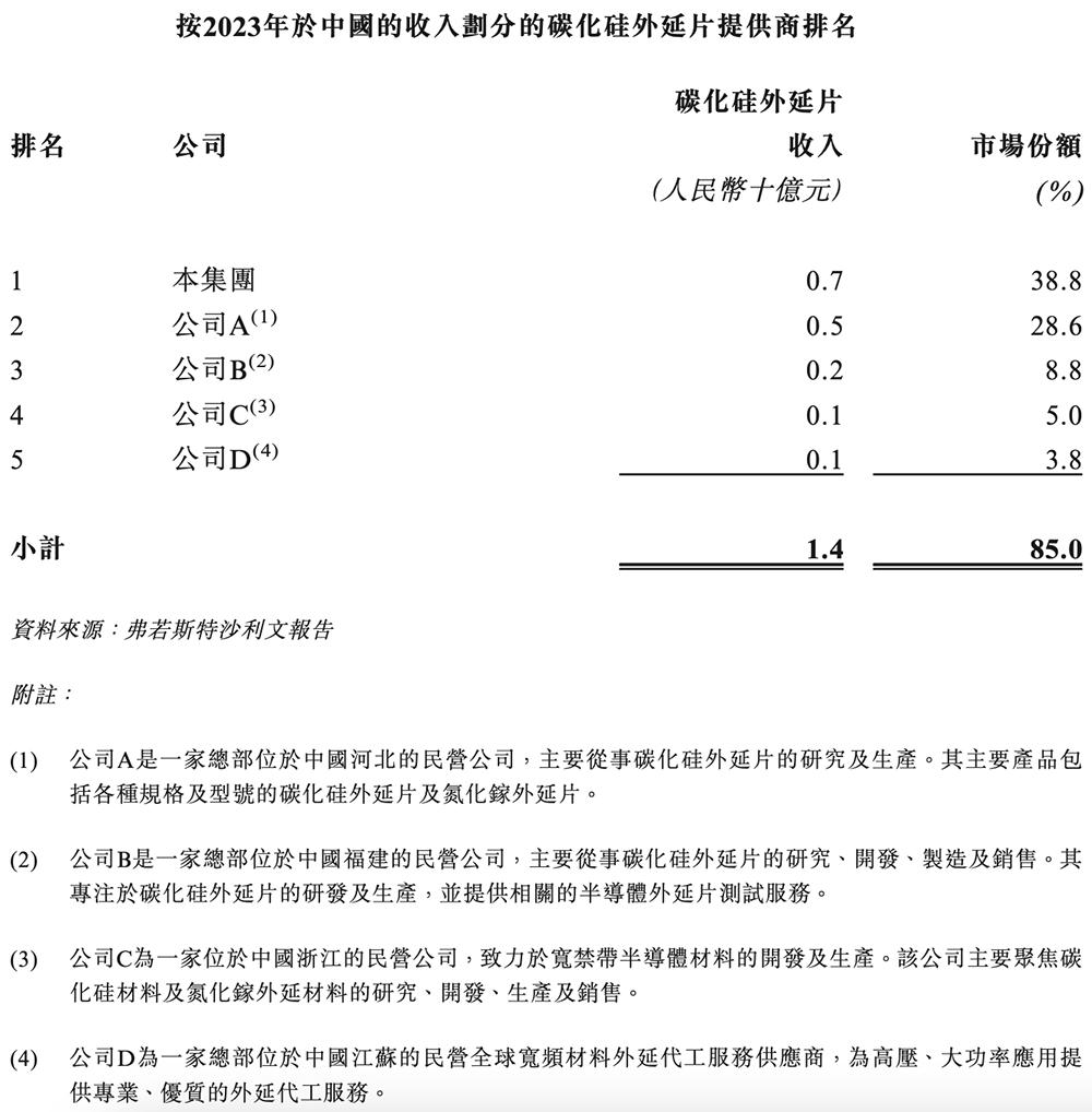 弗若斯特沙利文资料显示,天域半导体在2023年中国碳化硅外延片市场的份额,按收入计达到38.8%(收入约7亿元),按销量计达到38.6%,排名国内第一。