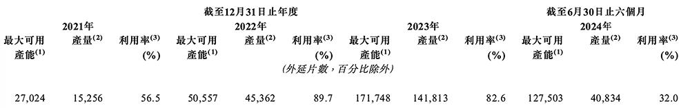 其年度/期间总部生产基地的最大可用产能、产量及利用率如下: