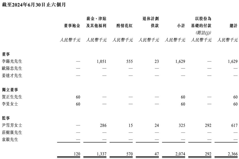 今年上半年,天域半导体董事及监事薪酬情况如下: