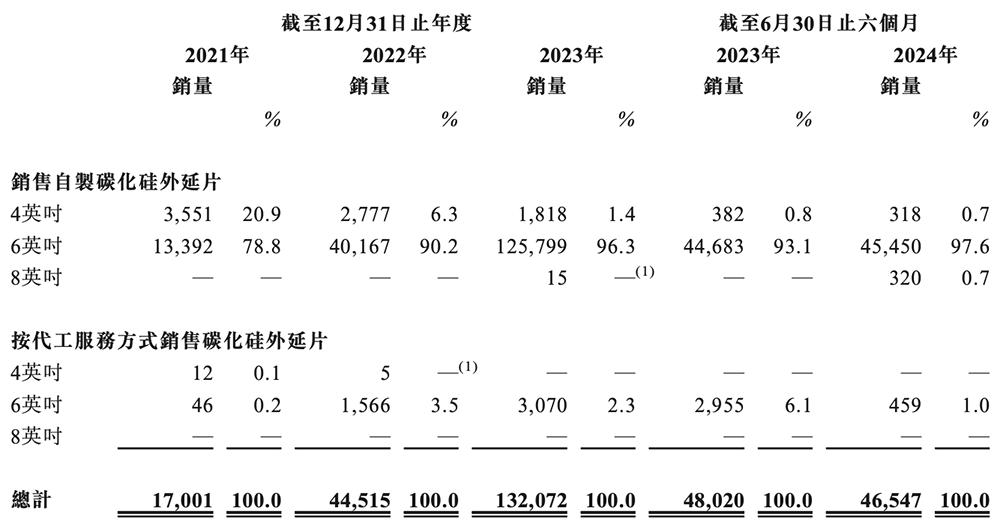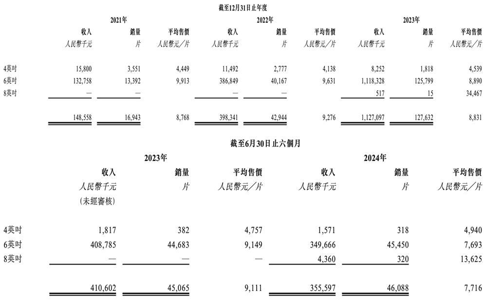 2021年、2022年、2023年、2024年上半年,天域半导体的销量分别为17001片、44515片、132072片、48020片,复合年增长率为178.7%。