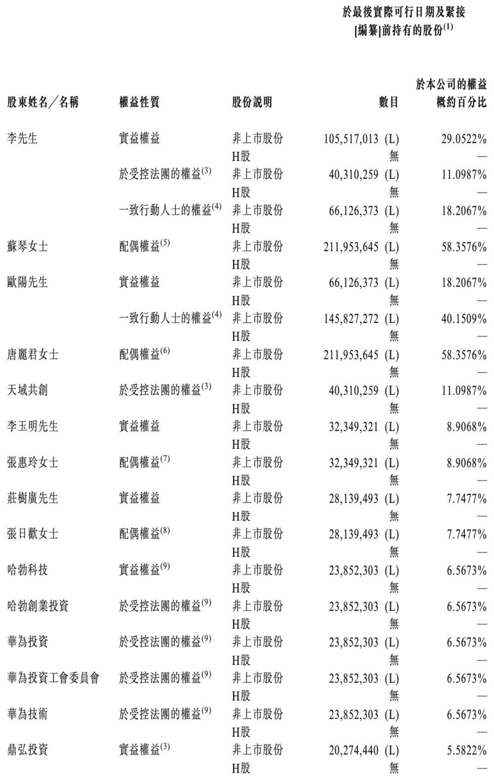 李锡光、欧阳忠、天域共创、鼎弘投资、润生投资、旺和投资被视为一组控股股东,等于最后实际可行日期合共持有天域半导体已发行股份总数的58.36%。