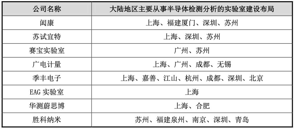 由于半导体客户对检测分析服务的时效性要求较高,第三方实验室检测分析机构具有一定的服务半径,因此区域性特点较为明显,总体呈现市场集中度较低、机构众多、单个机构规模较小的竞争格局。