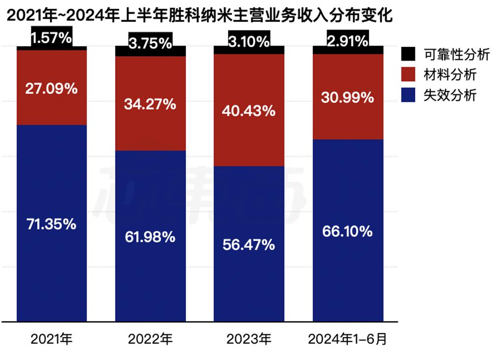 报告期各期,胜科纳米来自失效分析、材料分析业务的收入占比均超过95%,领先同行业可比公司。