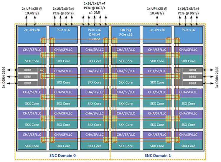 一般来说,NUMA划分的原则是让物理上临近某内存控制器的内核为一个子集。这个子集被英特尔称为SUB-NUMA Clustering,简称SNC。同一SNC的内核绑定了末级缓存(LLC)和本地内存,访问时的时延最小。