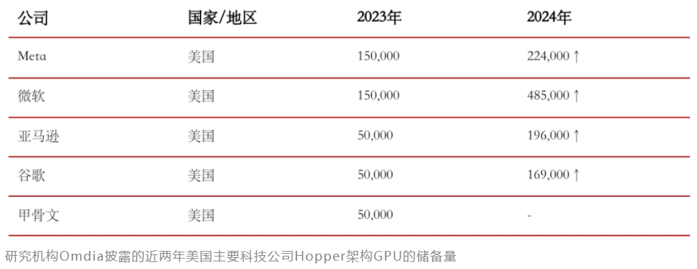 另一方面,研究机构Omdia的数据显示,截至2023年第三季度,英伟达H100出货量达到65万张,其中Meta和微软分别拿下15万张,接近全部订单的一半。到2024年,微软的Hopper系列GPU储备量直接冲到了48.5万张,其AI数据中心支出超过300亿美元,位列所有硅谷巨头之首。