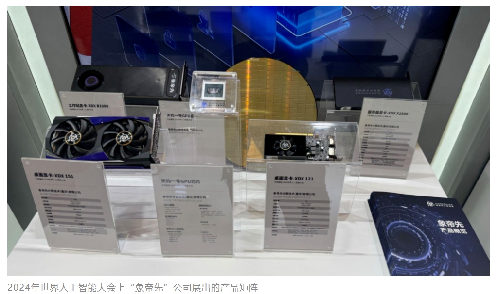 而象帝先直到2024年,还停留在桌面显卡市场,唯一能和AI芯片相关联的产品,是2024世界人工智能大会上亮相的一块神秘的PCIE版本服务器显卡XDX X1900。