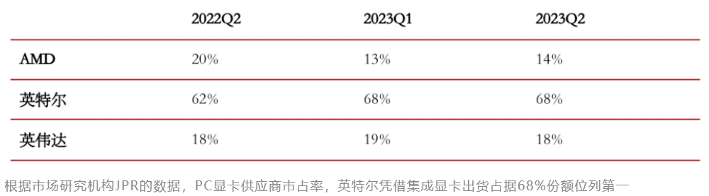 深度学习爆火之前,通用GPU需求数量最多的应用方向是PC桌面显卡,英伟达、AMD、英特尔是主要玩家,其中英特尔主要在CPU上集成GPU,2022年又重回独显市场。三家提供的产品多,满足办公、游戏、图形等各类需求。