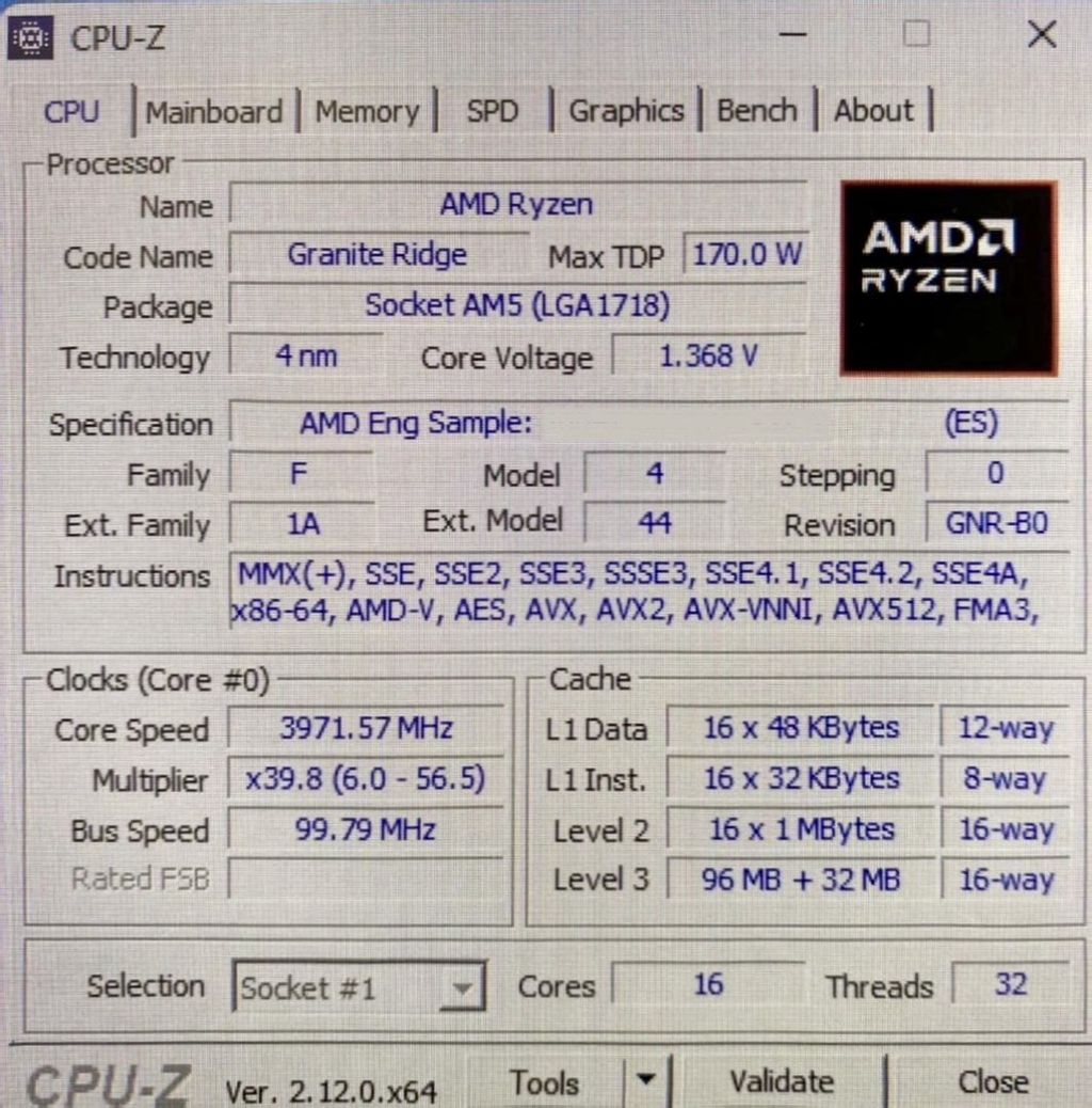 在三级缓存方面,CPU列出了96MB的3D V-Cache和32MB的普通缓存,总计128MB的L3缓存,以及16MB的L2缓存。这与上一代产品相比并无显著变化,因此观察它们之间的性能差异将十分有趣。同时请注意,如果此次泄露属实,那么展示的CPU仍是工程样品,并不代表最终的零售版本。