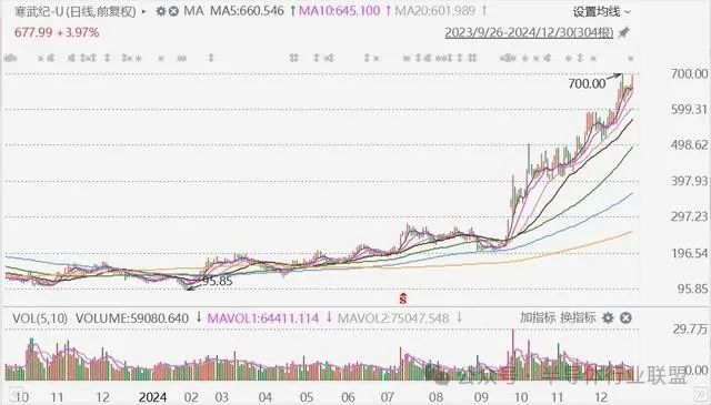 市场分析人士指出,面对美国的贸易限制,中国加大了对本土科技产业的支持力度,投资者对寒武纪的热情令其股价攀升。该股还可能受益于本月被纳入上证50指数,因为跟踪该大盘股指数的基金增持了该股。