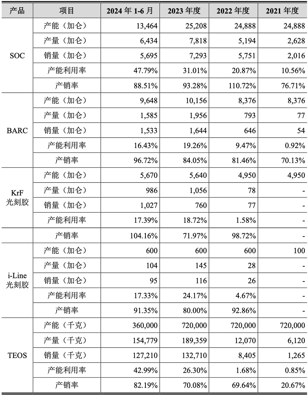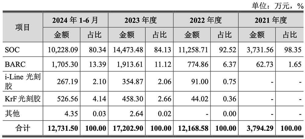 目前其 i-Line 光刻胶与 KrF 光刻胶已实现销售,ArF 光刻胶、SiARC、Top Coating 均已进入客户验证。