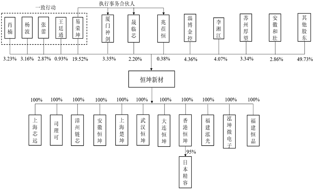 恒坤新材收购完成翌光半导体少数股东的股权后,通过翌光半导体间接持有大连恒坤、福建泓光及泓坤微电子 100% 股权。经一系列股权结构重组后,恒坤新材直接持有大连恒坤、福建泓光及泓坤微电子 100% 股权。
