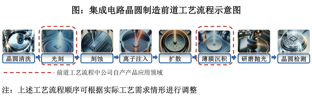 其自产产品主要包括 SOC、BARC、KrF 光刻胶、i-Line 光刻胶等光刻材料以及 TEOS 等前驱体材料,覆盖 128 层及以上 3D NAND、18nm 及以下 DRAM 存储芯片以及 7-90nm 技术节点逻辑芯片等境内集成电路产业主要布局产品。