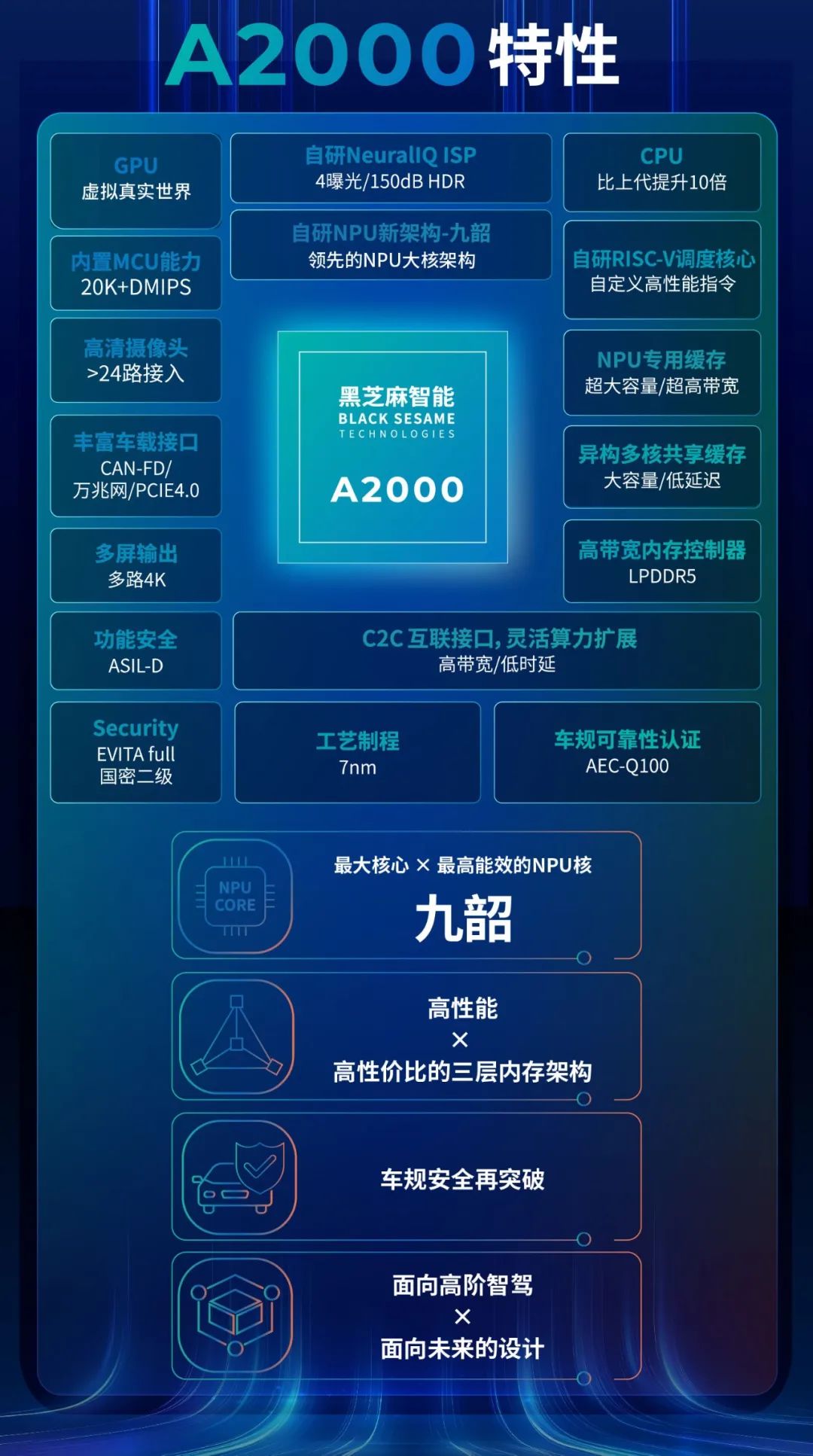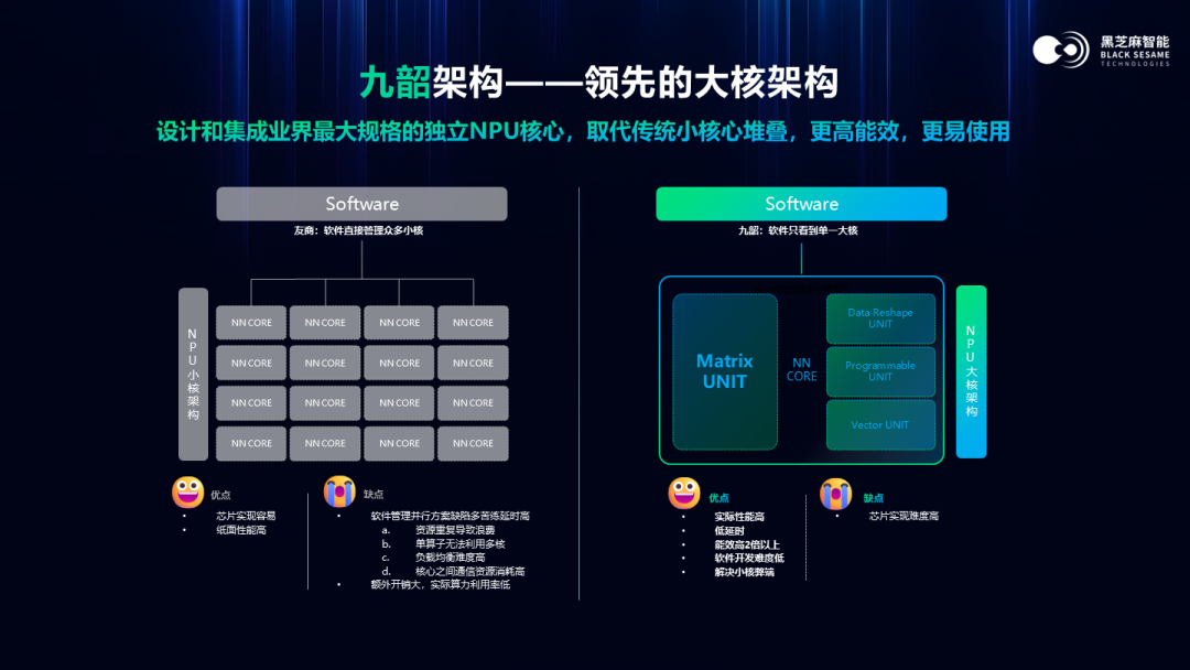 IT之家从公告获悉,黑芝麻智能推出了自研 NPU 新架构 —— 黑芝麻智能“九韶”,九韶是黑芝麻智能为满足自动驾驶技术需求而推出的 AI 芯片的计算核心,支持新一代通用 AI 工具链 BaRT 和新一代双芯粒互联技术 BLink。
