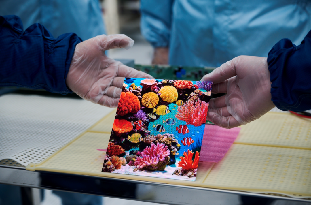本次全制程贯通仪式现场点亮的是天马自主研发生产的 PID 标准显示单元模块。该标准模块以天马 LTPS 基玻璃背板为基础,利用天马 Micro LED 产线自研的全激光巨量转移工艺,可打破传统显示尺寸限制,实现无尺寸限制的无边框拼接显示。