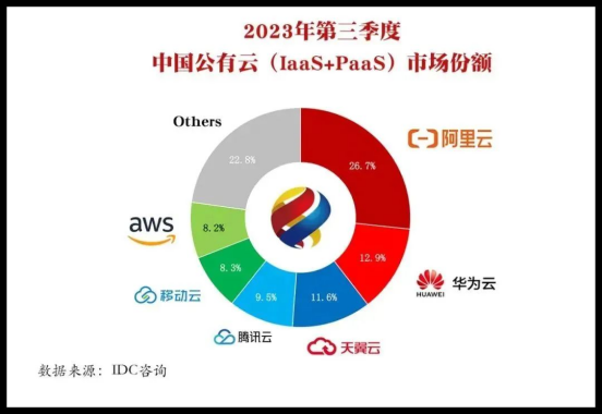 1月23日IDC发布的《中国公有云服务市场(2023年第三季度)跟踪》报告中提到,2023年第三季度,中国公有云(IaaS+PaaS)市场规模为535.66亿元,相比去年同期增加了72.1亿元。