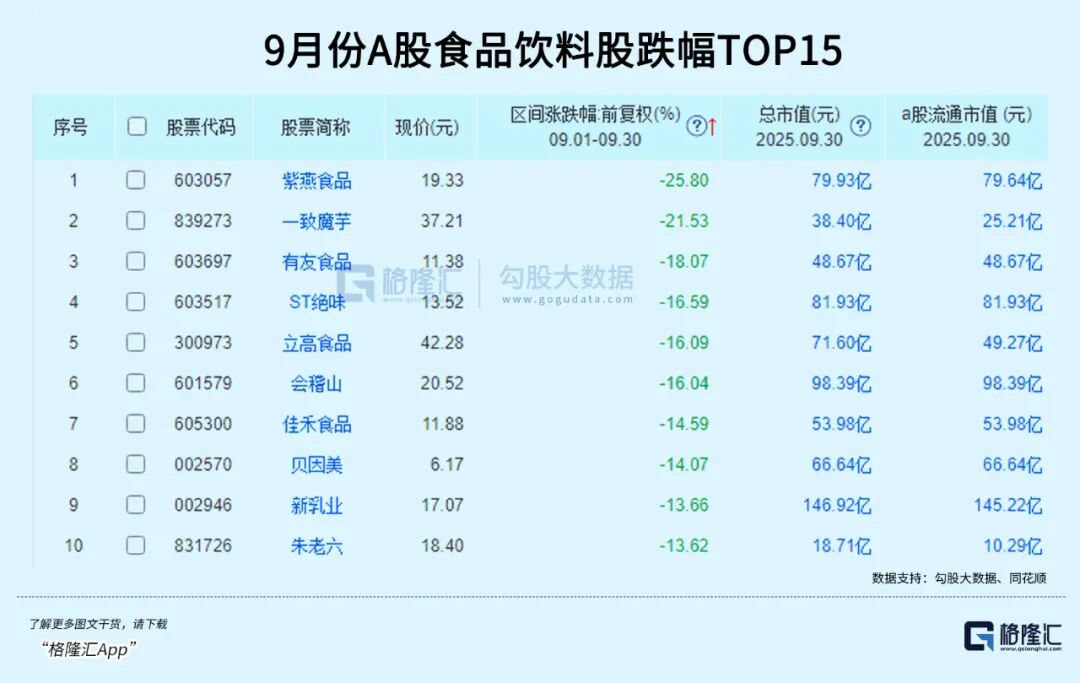 跌幅TOP3:食品饮料继续无人关注