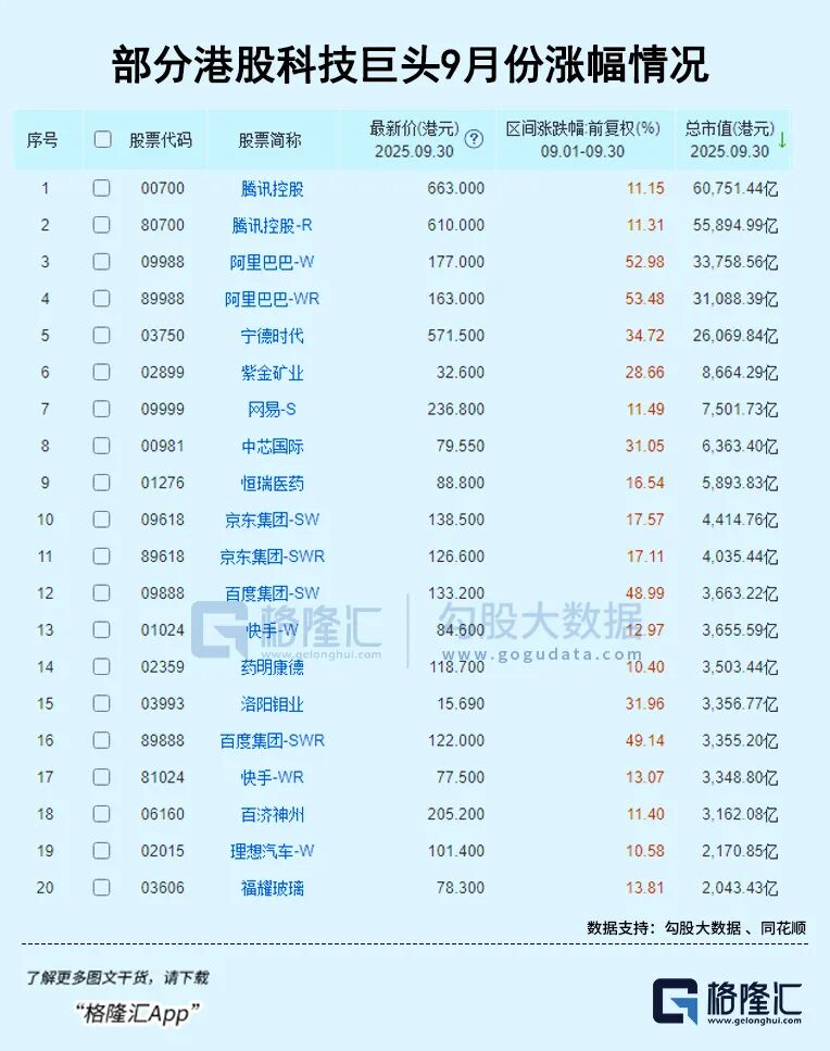 尽管9月份的A港美股三大市场的整体波动不算大,但其中作为各自市场中核心代表的科技巨头们表现却可圈可点。
