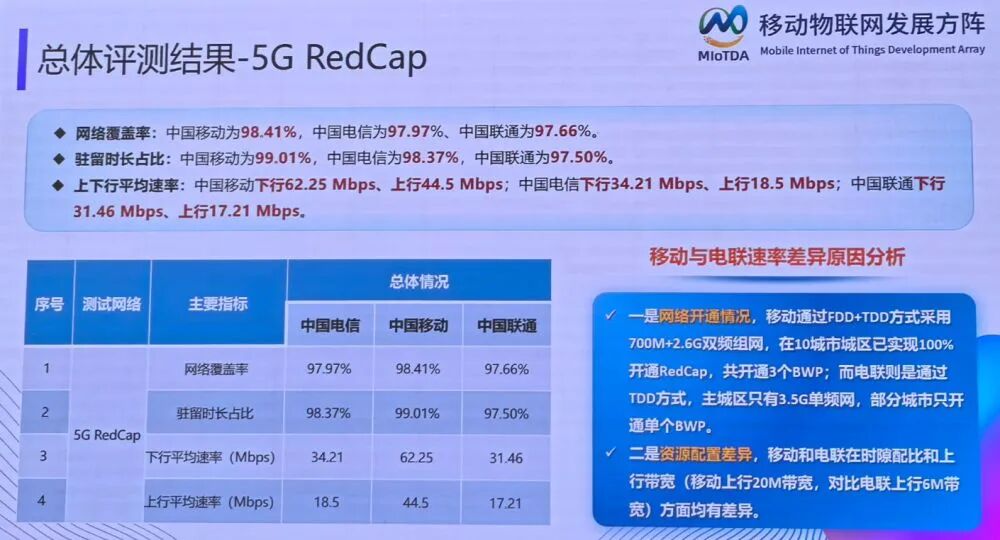 “根据评测结果,我们能够得出一个初步结论:目前重点城市各主干道路5G RedCap网络覆盖效果不错,中国移动、中国电信、中国联通的网络覆盖,均能满足相关各个行业对于物联网的需求。”中国信通院无线电研究中心无线应用产业与研究部主任曹磊在解读该报告时表示。