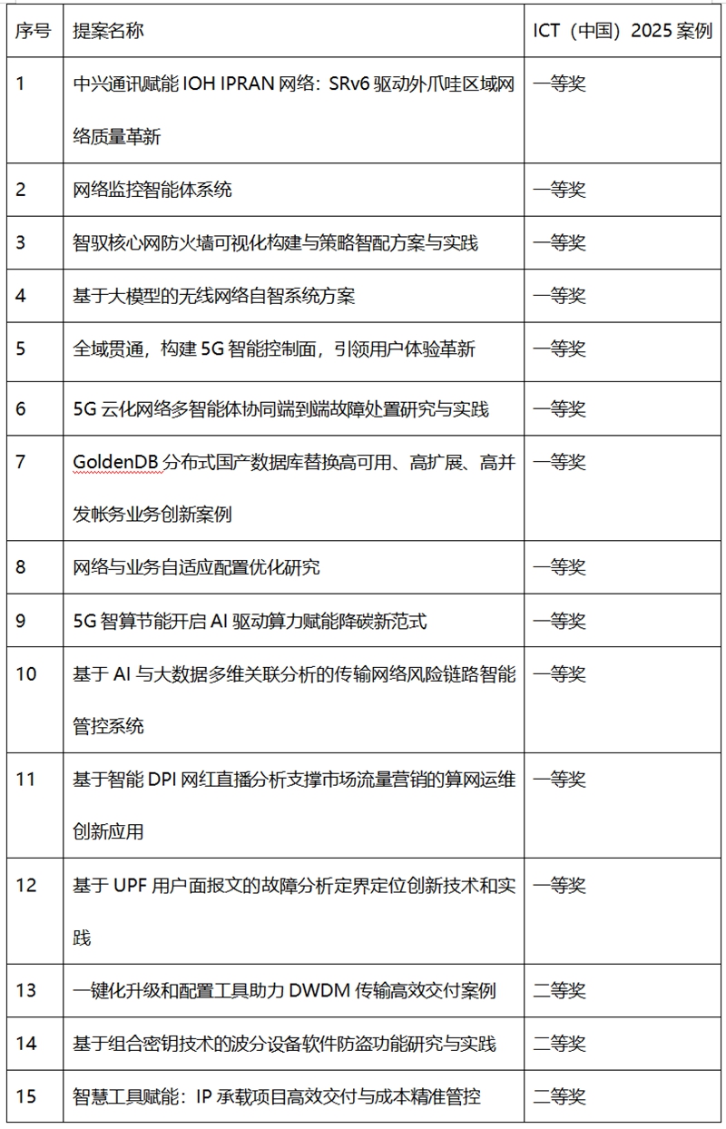 近日,中国通信企业协会正式公布了“ICT中国(2025)案例”评选结果,中兴通讯全球服务凭借其在技术创新与行业应用方面的杰出表现,从众多参评案例中脱颖而出,一举斩获36项大奖,包括12项一等奖、17项二等奖及7项三等奖。这一殊荣不仅彰显了中兴通讯在数智化领域的卓越实力,也体现了业界对其持续创新与贡献的高度认可。