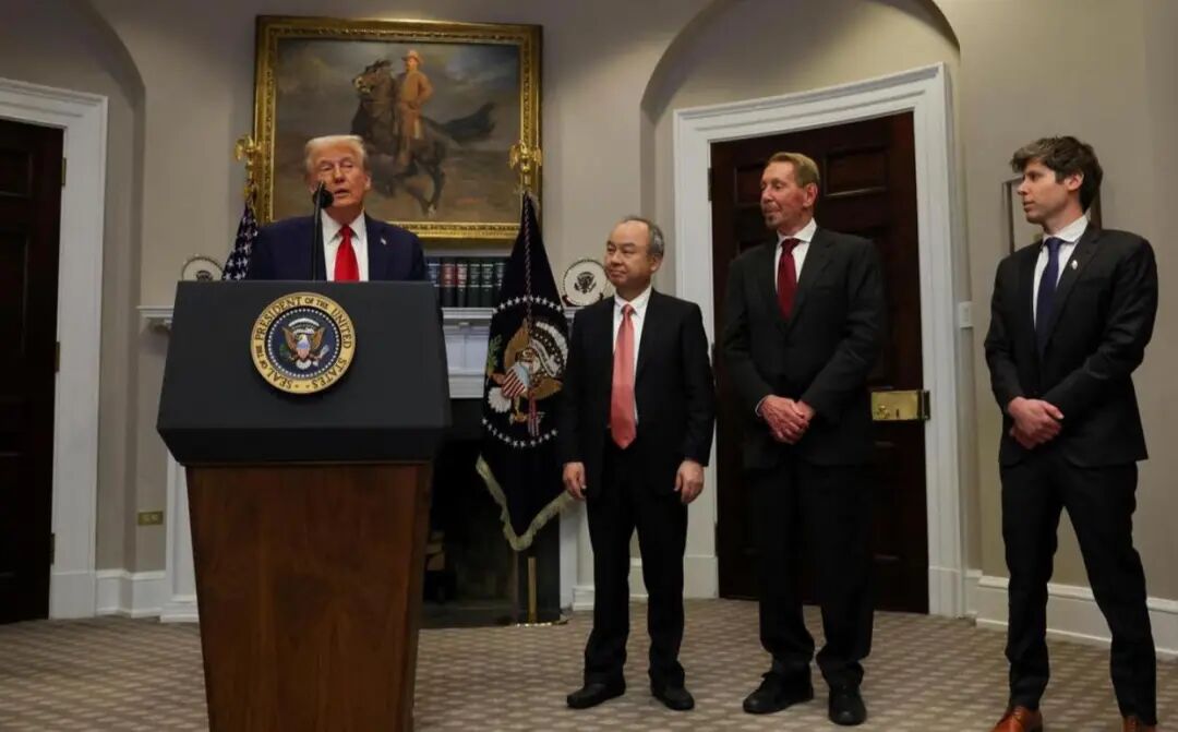 特朗普1月宣布AI投资计划,日本软银孙正义(左二)抱着对美国经济的强信心,携资加入“星际之门”