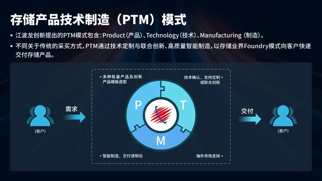 访谈中,曹浔峰重点介绍了江波龙新近提出的PTM(存储产品技术制造)模式,该模式的核心在于将公司的自研存储控制芯片、自研固件和硬件以及自有的先进封测制造等技术优势进行无缝衔接,实现更灵活、高效的全栈式定制化服务和一站式交付。