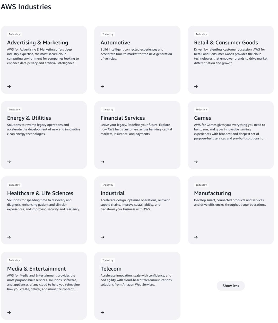 广告技术公司历来是 AWS 的大客户,正如在分析师会议中对广告业务的提及,在AWS的官网行业分类里,广告与营销业务是11大垂类行业之一。