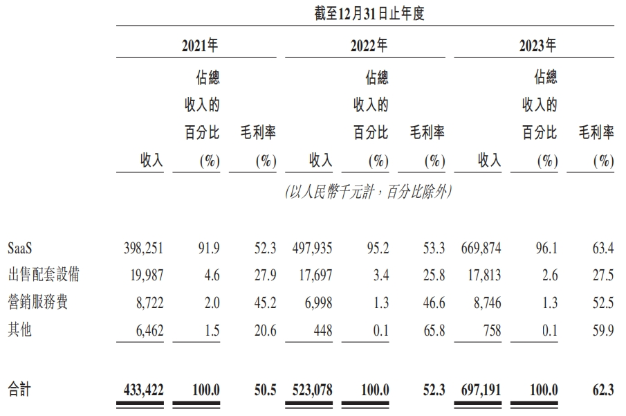 2020年至2023年,聚水潭销售及营销开支分别为1.59亿元、2.35亿元、3.14亿元、3.44亿元,研发开支分别为0.67亿元、1.92亿元、2.34亿元、2.34亿元,合计营收占比76.87%、98.91%、104.78%、82.93%。