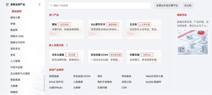 根据京东云主页信息,其提供的产品大致分为以弹性计算、人工智能、大数据为主的技术类产品,其次是以企业服务、智能客服、金融科技等非技术类产品。放到整个行业中看,这些产品的竞争力并不大。