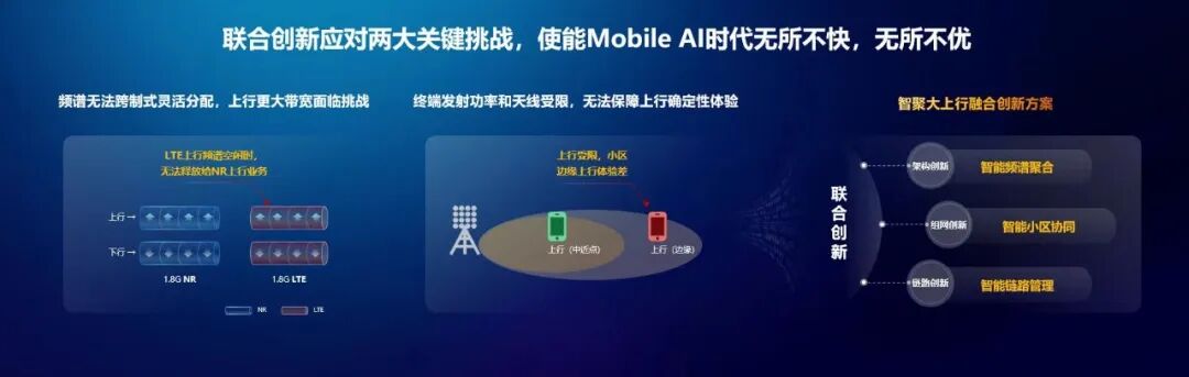 该技术包括智能频谱聚合、智能小区协同、智能链路管理三大创新,充分挖掘多天线的上行覆盖能力,并结合分布式 UCN(User-Centric Network,用户中心网络)和时频制空功全资源实时共享,引入无线智能化技术,构筑无线网络 AI 业务承载网。
