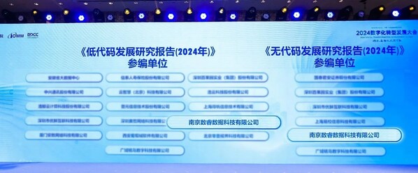 南京2024年9月26日 /美通社/ -- 9月24日-25日,中国信通院在北京同时召开2场数字化大会,作为铸基计划与无代码推进中心成员单位,数睿数据同时受邀出席,成功入围数字化转型全景图、技术解决方案集,并被授予低/无代码报告参编单位证书。
