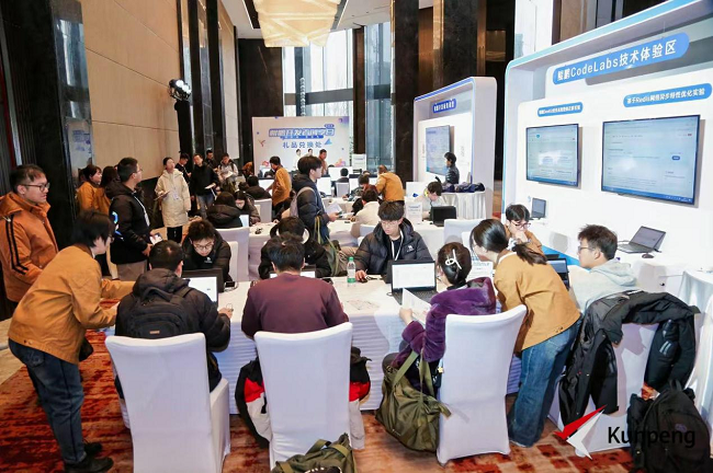 为全方位、多维度为开发者提供更易获取的体验和开发资源,活动展区设置了开发者解决方案区、北京鲲鹏联合创新中心区、鲲鹏社区体验区以及金种子实战演练场。现场提供14台便携机供实操,通过“实验打卡”“捉虫赠礼”等互动,让开发者零距离感受鲲鹏工具与生态资源。