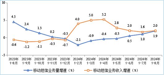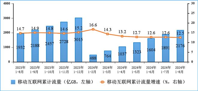 移动数据流量业务收入小幅回落。前8个月,三家基础电信企业完成移动数据流量业务收入4342亿元,同比下降2%,占电信业务收入的37%,占比较前7个月提升0.1个百分点。