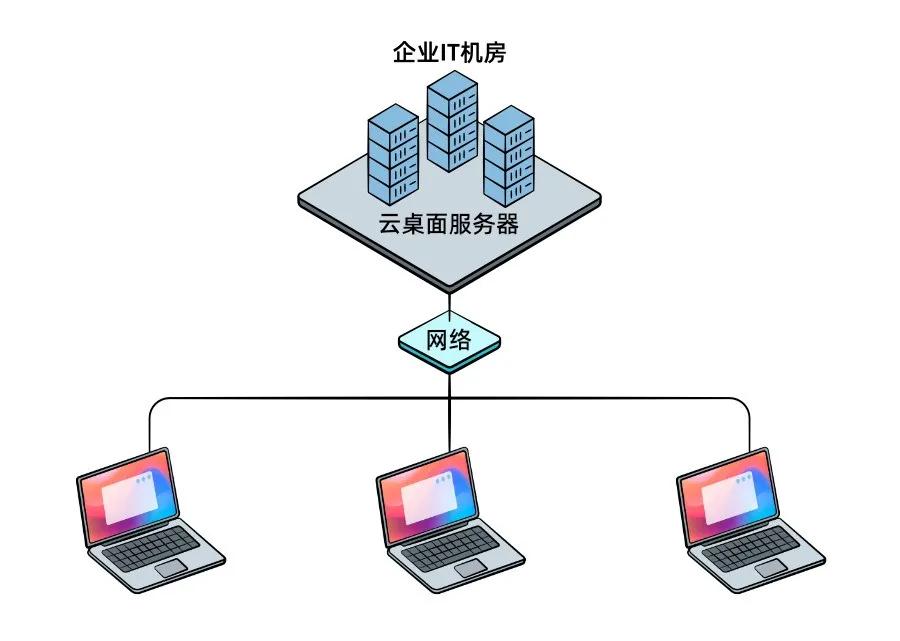 而云电脑则是在云桌面的概念上更进一步,将所有的硬件全部集合置于一处,再用互联网这张大网将所有设备连接起来。