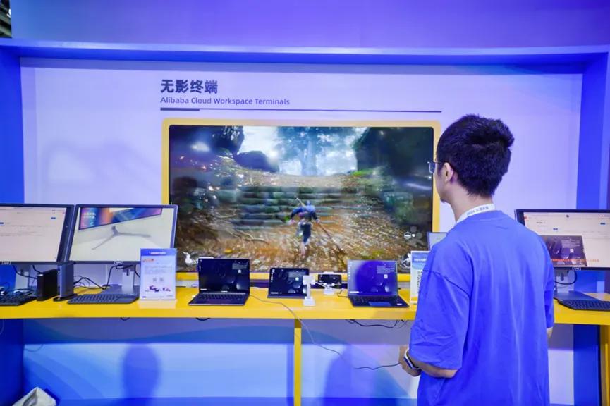 在云栖大会的无影云电脑展区,参会者可以亲自体验在云电脑上进行游戏的感觉,无论是角色的跑动、跳跃,还是紧张刺激的战斗场景,都如丝般顺滑,毫无卡顿,几乎零延迟。