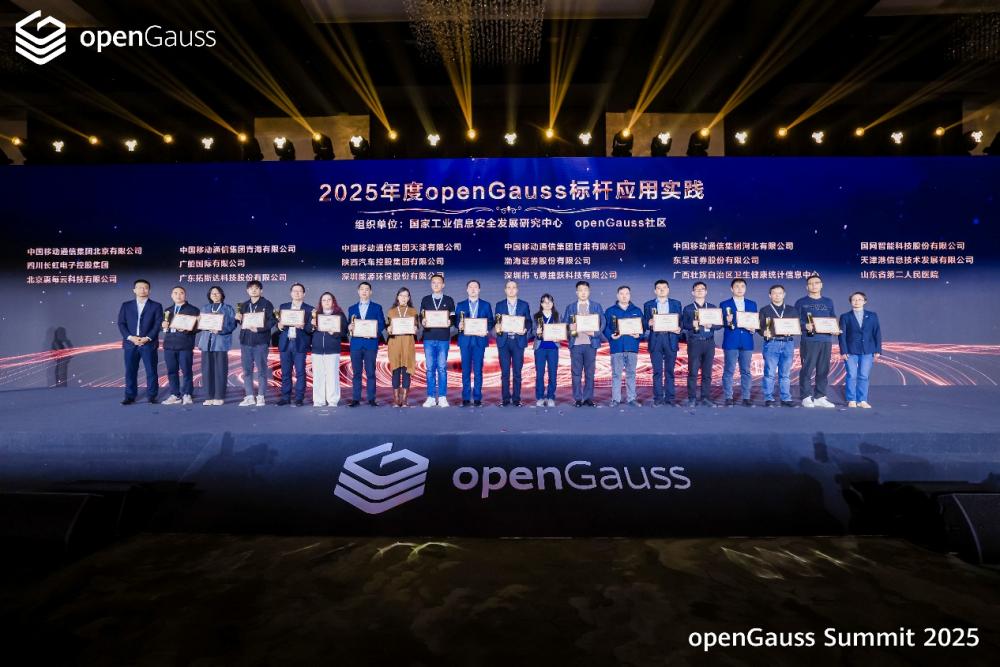 为树立行业典范,大会联合国家工业信息安全发展研究中心,隆重颁发了“2025年度openGauss标杆应用实践案例”奖,表彰了包括北京移动、国网智能、广船国际、陕西汽车、东吴证券、天津港、山东省第二人民医院等在内的18家优秀实践单位。