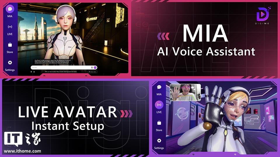 DigiME 还内置由 MIA 驱动的智能语音助手,可作为 MSI 产品专家提供实时引导,并支持多语言交互与语音定制,进一步拓展创作者在虚拟世界中的表达方式。