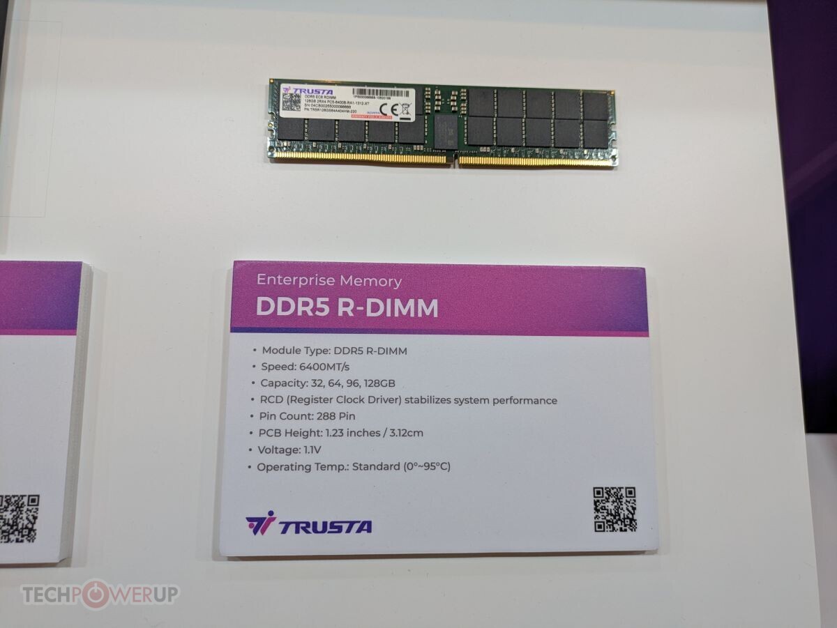 同时,TRUSTA 还发布了新一代 DDR5 R-DIMM 企业级内存,最高速率可达 6400MT/s,工作电压 1.1V,单条容量涵盖 32GB、64GB、96GB 和 128GB。