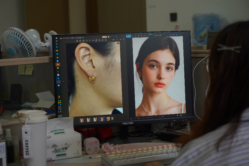 以首饰设计为例,传统设计需要经过产品构思、手绘图稿、2D效果图、数字建模等过程,一名设计师一天最多只能设计10个新款。现在,设计师只要输入风格、材质等关键词,或者是一张草稿图纸,AI就能生成多款产品创意。