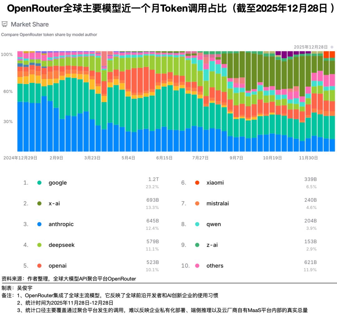 这种“矛盾”的成因是,阿里的通义千问、通义万相等都是开源模型。IDC无法统计到开源模型被使用的情况。OpenRouter主要覆盖通过聚合平台发生的调用Token,又难以统计云厂商自有MaaS平台内部、企业私有化部署、端侧推理以及真实总量。