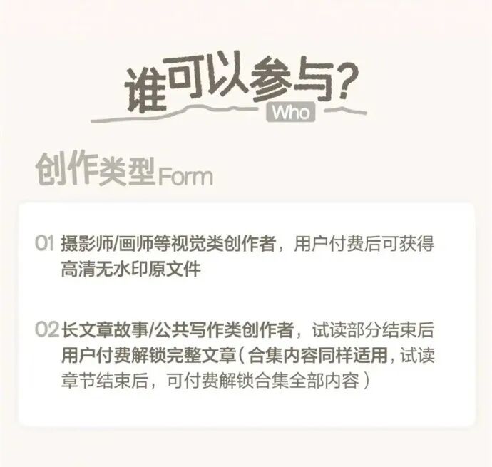 本次小红书内测的付费功能涵盖三种模式,即图片-长文-系列内容,每一种模式都针对了特定的创作者群体及相应的用户需求,让我们一起来看一下:
