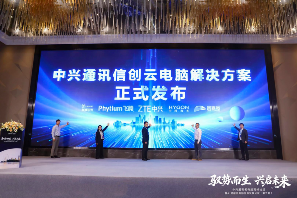 在此次论坛上,中兴通讯联合海光信息、飞腾、麒麟软件和景嘉微等行业伙伴,共同发布中兴通讯信创云电脑解决方案。中兴通讯坚持长期主义,合作共赢的理念,将携手更多合作伙伴共赢数智新增长。