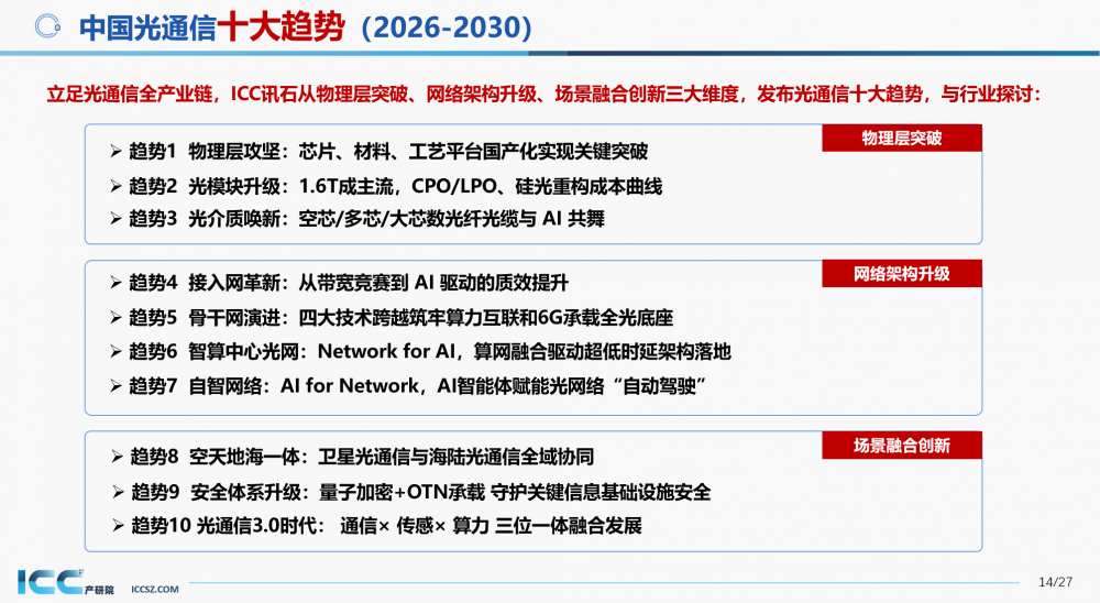 趋势十:光通信 3.0 时代,通信 × 传感 × 算力三位一体融合发展。