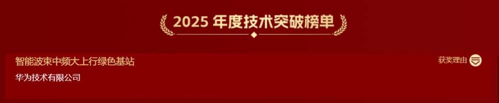 智能波束中频大上行绿色基站荣登2025年度技术突破榜单